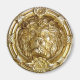 Un león de oro esculpido benevolentemente a través de un marco romano.