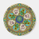 Arcos de estilo Art Nouveau rodean las capas de vidrio manchadas de esta mandala, con fuegos artificiales, girasoles, conchas, soles y tormentas en colores vivos que encarnan la actividad que viene con el verano.