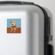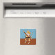 Un gatito sonriente y torpe una pose de baile en este lindo imán. El gatito beige está vestido con un colorido trajes Harlequin en tonos naranjas, azules, amarillos y rojos. El aspecto se completa con un espigón de encaje blanco y un amplio cinturón negro con una gran hebilla de oro. El gato también usa una máscara amarilla de tipo mascarada. Está bailando en un suelo de baldosas de madera frente a un fondo azul lleno de notas musicales. Este diseño va a traer una sonrisa a la cara de cualquier amante de los gatos. De mi imagen original de medios mixtos creada digitalmente.