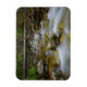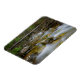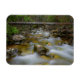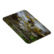 Imán fotográfico rectangular con agua con movimiento en una cala rocosa en un bosque de Noruega con un árbol caído como puente sobre él.