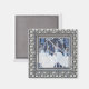 imán cuadrado de bonito, con la pintura acrílica de María Egilsson titulada Vals de los copos de nieve, ambientado en un marco de corte de plata.