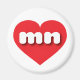 Este imán presenta un corazón rojo vibrante que contiene las letras fundas más bajas redondeadas, en negrita, blancas, una abreviatura divertida para Minnesota, el estado de North Star.