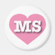 Este imán presenta un vibrante corazón rosado que contiene las letras negrita, blanca y alta del funda MS, la abreviatura oficial de Misisipi, el estado de Magnolia.