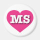 Este imán presenta un vibrante corazón rosado caliente que contiene las letras audaces, blancas, fundas superiores MS, la abreviatura oficial de Misisipi, el estado de magnolia.