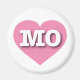 Este imán presenta un vibrante corazón rosado que contiene las letras negrita, blanca, alta funda MO, la abreviatura oficial de Misuri, el estado Show Me.