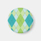 Patrón de argyle preppy en verde verde azulado, azul claro y primavera con "puntos" contrastantes negros sobre fondo verde pálido.
