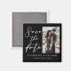 Moda sencilla y elegante, nuestra minimalista colección de bodas de invierno presenta una tipografía cursiva elegante para su evento moderno. Envíe a sus invitados una noche Guardar el imán Date con un llamativo guión blanco en negrita sobre un fondo negro junto a su foto de compromiso.