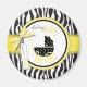 Estilo boutique con estampado de cebra y puntos con acentos amarillos y un carro de bebés.