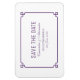 Sencilla y minimalista Moda Deco Salvar el imán Date Flexi con un moderno borde decorativo de arte violeta. Este clásico y elegante ahorra el imán de fecha es fácil de personalizar con los detalles de su boda. Para obtener más opciones de personalización, haga clic en Personalizar.