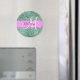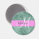 Moda y purpurina rosa y verde glam deslumbra el nombre del monograma blanco y el imán inicial. Su nombre personalizado y su monograma están escritos en un guión elegante con letras a mano con un fondo rosado. Puede cambiar el color del texto y el estilo y el tamaño del tipo de letra mediante la opción personalizar. ¡Un regalo perfecto de cumpleaños o Navidades!