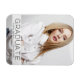 Hermosos imanes de invitación de graduación con un texto de estilo moderno. Este diseño presenta su foto personal con información de graduación. Para ver más artículos como este, visita mi tienda aquí en "www.Zazzle.com/LakeViewCardCo". ¡Gracias