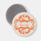 El elegante y sofisticado Damask Magnet de Moda presenta un suave fondo beige y un elegante embellecimiento adamascado en naranja. Este diseño moderno es fácil de personalizar con su propio texto. Haga clic en "Personalizar" para encontrar más opciones de personalización.