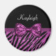 Imán Moda Púrpura Zebra Imprimir FAUX Glitz Bow con nom