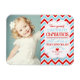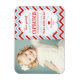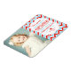 Patrón de rayas de zigzag rojas, blancas y azules en el fondo. Elegante marco donde se lee "Ten una feliz Navidad llena de mucha paz, amor y alegría". Personalízalo con tu foto favorita y tu apellido.