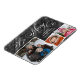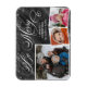Imán Moderno Black Elegant Script Snowflakes Bokeh Flar