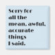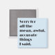 Añade un toque de humor y estilo moderno a tu casa con este divertido imán que presenta el texto 'Lo siento por las cosas malas, terribles y precisas que dije' en negrita. El diseño elegante con un suave fondo pastel lo convierte en un complemento perfecto para cualquier cocina o oficina. Ideal para regalar o para uso personal, este imán combina la estética contemporánea con un toque lúdico, asegurando que se destaque en cualquier superficie.