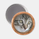Un imán con un diseño de un ojo de buey metálico de oro subió, personalizable con tu imagen de gato preferida o cualquier otra foto de tu elección.