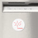 Cafeína - imán blanco con letras rojas y modelo molecular 2D.