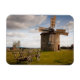 Con un molino de viento de estilo antiguo, utilizado para moler grano en harina, en un campo verde brillante en el maravilloso clima.