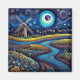 A.I. creó la impresión de un molino de viento majestuosamente en un vibrante paisaje floral bajo un alegre y energético cielo nocturno.