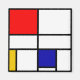 Arte mondrónico: arte abstracto del siglo XX con tres colores primarios (rojo, azul y amarillo), tres valores primarios (negro, blanco y gris) y dos direcciones primarias (horizontal y vertical).