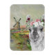 Hermosa y artística compilación presenta la CHAMP TULIPES EN HOLLANDE de Claude Monet como fondo con retrato de llama adorable con una corona floral acuosa de color agua.