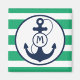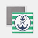 Bandas náuticas verdes con ancla azul marino y monograma.