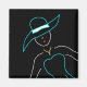 Un divertido esquema de dibujo de una joven y fresca mujer en un gorra y vestido azul de moda. Hace de un imán único y un gran regalo para los que aman la moda y la alta sociedad.