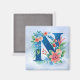 Imán Monograma azul con flores