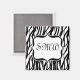 Imán Monograma de cebra blanca y negra funky