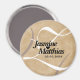 Añada un toque de encanto vintage a su día especial con este imán rústico boda, que presenta letras blancas en serif y guiones sobre un fondo de textura de arpillera (simulado) teñido y descolorido / lienzo / lino bruto / papel kraft. La forma discreta, sutil y elegante de recordarle a los demás su día especial. Personalizar con nombres de recién casados, un primer o monograma para el apellido y fecha de boda. ¡Un gran favor para los clientes y un maravilloso toque de boda rústico! Diseño © W.H. Sim. Ver más en zazzle.com/expressionsoccasions