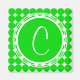 Los puntos verdes de los cuartos más cercanos crean un patrón secundario de estrellas blancas. Un gran círculo verde está rodeado de líneas blancas, mientras que una sola inicial blanca adorna el centro.