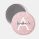 El purpurina de oro rosa rosa rosa rosa rosa rosa rosa rosa moda y brillante destella imán metálico, con un gran monograma inicial blanco y su nombre personalizado en un elegante tipo de letra gris. Personalice este imán de moda con su nombre o monograma inicial. Puede cambiar el color del texto y el estilo y el tamaño del tipo de letra mediante la opción personalizar.