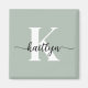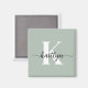 Este imán cuadrado sencillo y elegante de color verde sabio de 2" con tu primer nombre en un tipo de letra de guión moderno en negro y tu primera versión inicial en un tipo de letra moderno en blanco es perfecto para ti. Es de diseño y a la vez muy clásico. Se verá fabuloso en su archivador, refrigerador, escritorio.