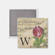 El tulipán múrpura y amarillo de estilo botánico está asociado con la partitura de chapa de época en un estilo victoriano clásico. Este diseño inspirado en la desconexión se personaliza con el monograma "W" sobre un fondo de pergamino envejecido.