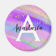 Imán giratorio y glam con un fondo de arcoiris de unicornio colorido, y purpurina dorado brilla confetti. Personalice su nombre personalizado en negro y su monograma inicial en blanco. Puede cambiar el color del texto y el estilo y el tamaño del tipo de letra mediante la opción personalizar.