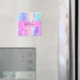 Magnético y lindo imán con un colorido color rosa, púrpura, lila, azul y verde corazones de arco iris unicornio brillantemente fondo. Su nombre personalizado y su monograma están escritos en un guión elegante con letras a mano con un fondo rosado. ¡Un regalo perfecto de cumpleaños o Navidades!