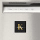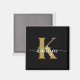 Este imán cuadrado simple y elegante de 2" negro con tu nombre en un tipo de letra de guión moderno en blanco y tu primera versión inicial en un tipo de letra moderno en oro es perfecto para ti. Es de diseño y a la vez muy clásico. Se verá fabuloso en su archivador, refrigerador, escritorio.