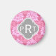 Placa de quatrefoil de inspiración marroquí gris y blanco monogramada para las tres letras iniciales de tu nombre en un patrón adamascado moderno con flores rosadas. Patrón femenino femenino femenino de Guay con monograma personalizado.