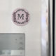 Un diseño elegante en color púrpura y plateado enmarca un monograma de personalizable.
