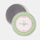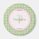Un bonito imán de monograma de gingham verde de estilo rústico con una etiqueta de gingham rosa y una cinta rosa de filigrana. Personalice agregando su nombre e iniciales. Llamará la atención a la chica elegante y femenina.