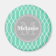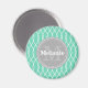 Moda, moderno, elegante y elegante patrón de entramado moderno en una paleta de color verde y blanco menta con una placa con nombre de círculo para su nombre personalizado personalizado y letra inicial monograma.