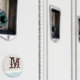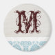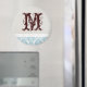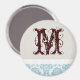 Azul Filigree Damask Blanco Gris Swirly Diseño Papel textil-Textura Monograma Imán inicial de cocina Personalizado