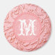 Pink Filigree Madera tallado Floral Glam Glamour Swirl Monograma inicial Imán de cocina personalizado