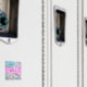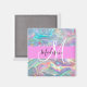 Nombre de monograma holográfico iridiscente del arco iris gris e imán inicial. Su nombre personalizado y su monograma están escritos en un guión elegante con letras a mano con un fondo rosado. ¡Un regalo perfecto de cumpleaños o Navidades!