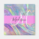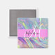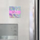 Nombre de monograma holográfico iridiscente del arco iris gris e imán inicial. Su nombre personalizado y su monograma están escritos en un guión elegante con letras a mano con un fondo rosado. ¡Un regalo perfecto de cumpleaños o Navidades!