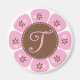 Monograma de diseño de flores rosadas y marrones en bolsos de té, tazas, mousepads, camisetas y más con la "T" inicial. Estos artículos iniciales en monograma hacen grandes regalos a los chicas en la fiesta de bodas y a la madre y abuela de la novia y el novio también!