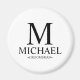 Regalos Groomsman personalizados modernos en blanco y negro con monograma personalizado, nombre y título de un groomsman con estilo de letra serif clásico negro sobre fondo blanco. También perfecto para el Mejor Hombre, Padre de la Novia y más.