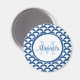 Dé un toque moderno a su estilo con este imán redondo gráfico de escala de pez azul y blanco que puede personalizar añadiendo su nombre y monograma inicial. Este diseño de diseño de patrones geométricos de conchas es audaz, pero elegante.