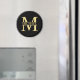 Giftsch personalizados Monograma y Nombre con monograma de oro personalizado en estilo clásico serif con caja de nombre en medio de monograma sobre fondo negro.
